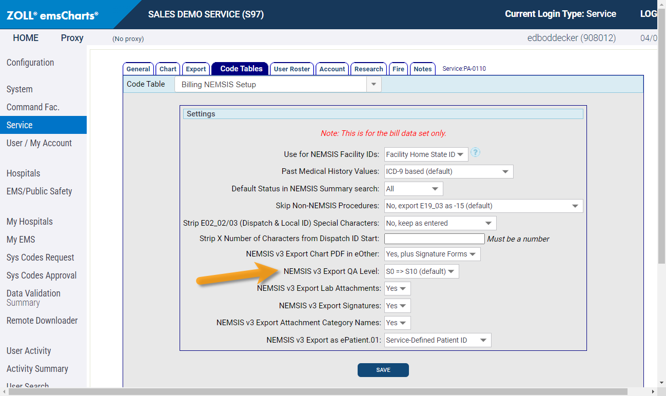 NEMSIS v3 Export QA Level: Control the point in the QA process in which the export will occur.