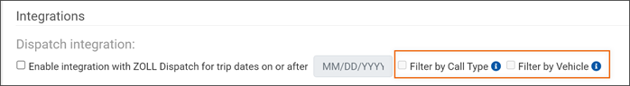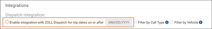 • ZOLL must configure the ZOLL Dispatch Bridge prior to checking the "Enable integration with ZOLL Dispatch for trip date on or after" box.