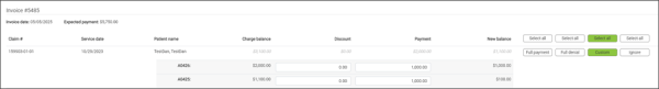 Full denial: If they denied a specific claim within an invoice you can click Full denial. The payment amount changes to $0.00 and the claim's status changes to denial.