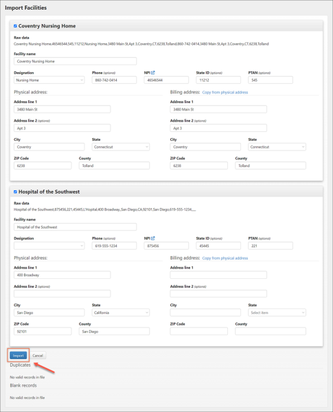 So far, no facilities have imported. Before that happens, you have the opportunity to verify that everything is correct and make changes if necessary.