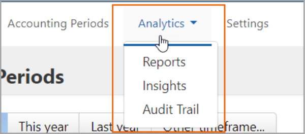 Users with the Analytics permission can click the Analytics option on the navigation bar which gives them access to reports, Insights, and the company Audit Trail.