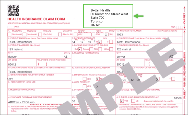 When the international address prints on the 1500 form, each field will display on a separate line.