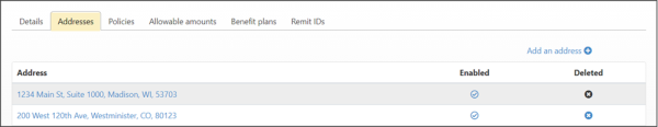 If this is an existing payer, click the payer name and then click the Addresses tab. On the Addresses tab, click the Add an address link.