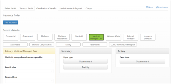 When the "Medicaid Managed Care" policy type is configured for a payer, a tile on the COB will display right after the Medicaid tile. You cannot add a Medicaid and Medicaid Managed Care plan in the COB at the same time. Medicaid Managed Care can be posted as primary, secondary, and/or tertiary.