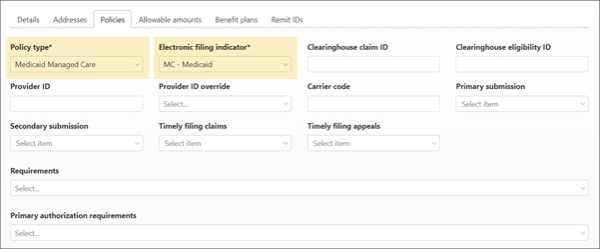 Click on the Policy typefield and select Medicaid Managed Care.