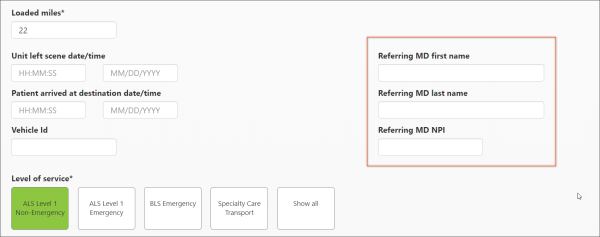 If the "Require referring physician" requirement is set, the following Incident details fields must be filled out when selecting this payer: