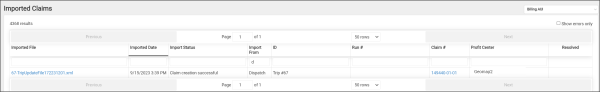 Dispatch import: The lat/long of the pick up location in the Dispatch import will be mapped to an area within the boundary of a profit center. The profit center name will then display in the Profit Center column on the Imported Claims page.