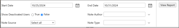 - If you want to show deactivated users in the report, click the 'False' button for 'Show Deactivated Users.'
