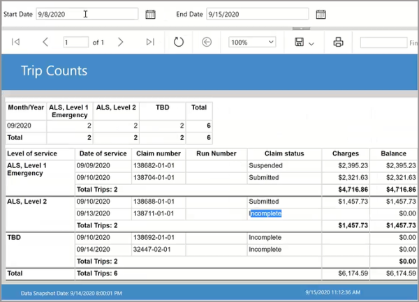 The Trip Counts report shows a summary of monthly trips listed by level of service. Throw this into a Pivot Chart to see if you are trending and how many types of trips you are doing.