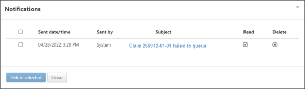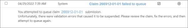 To fix the error(s) on the claim, click the claim number on the notification to go to the Claim page. On the top of the Claim page, you will see a validation banner that explains the error and suggests steps.