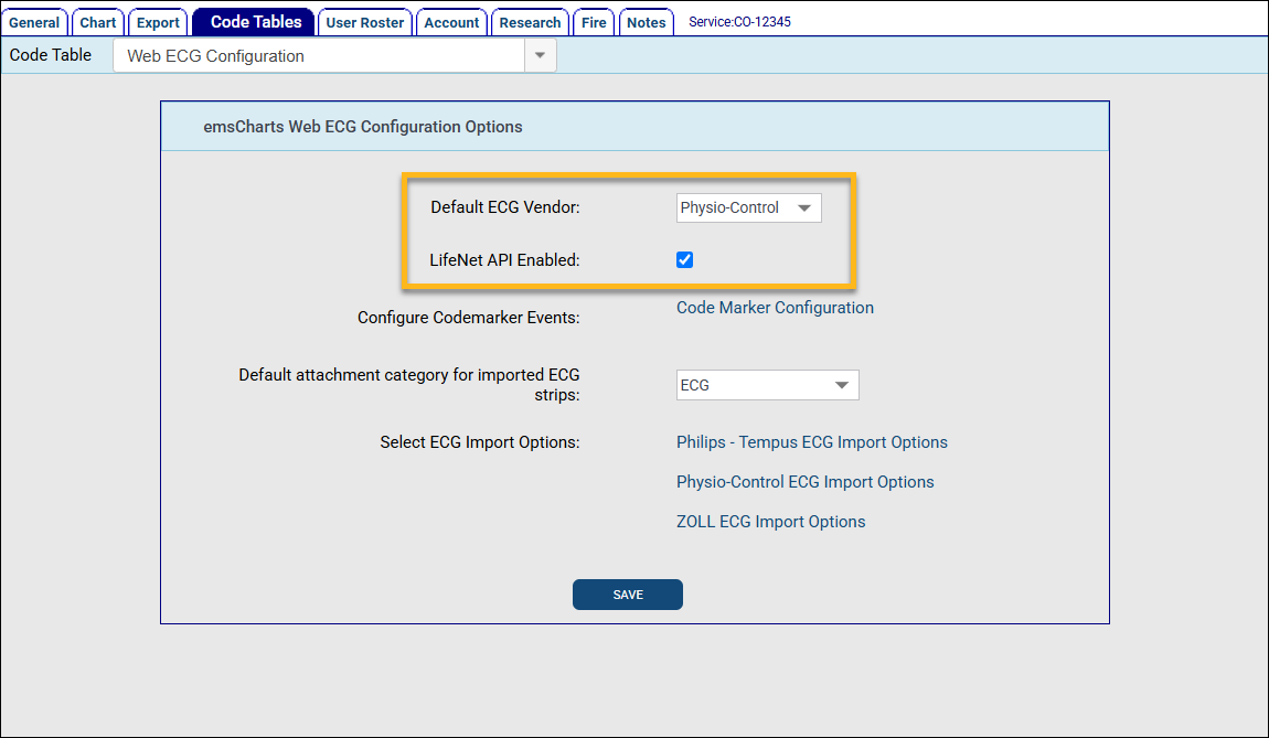 Select Physio-Control in the Default ECG Vendor drop-down menu.