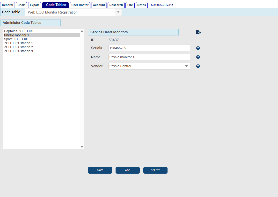 Go to Service Configuration > Code Tables > Web ECG Monitor Registration.