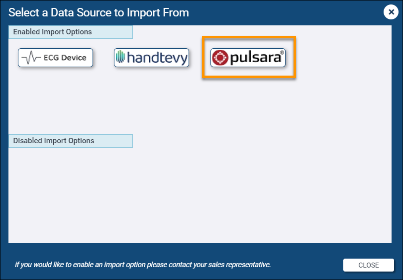 Note: If the Pulsara option is disabled, contact your ZOLL Sales Representative to enable the module. Once the module is enabled, your administrator will need to set up the Pulsara Configurations in emsCharts.