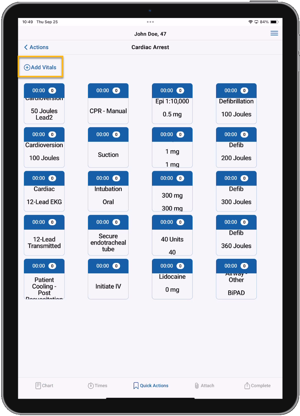 • A shortcut has been added to the Quick Action Buttons page to bring users to the Timeline for quick vitals documentation. Saving the vitals or tapping Back will bring users back to the Quick Action Button page.