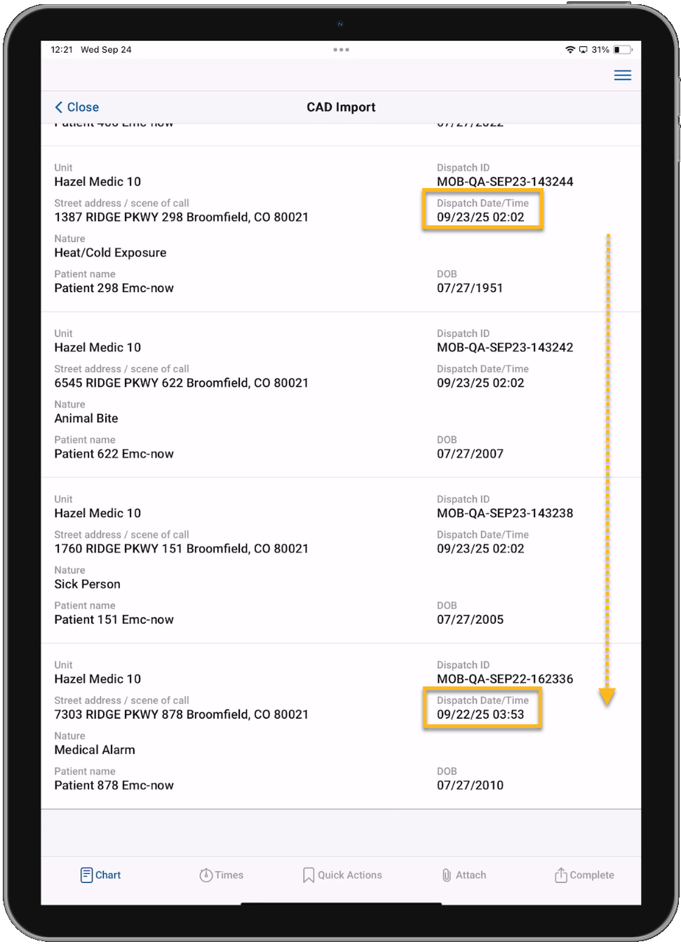 • Available CAD records will now be displayed in descending order so the most recent records appear at the top of the list.