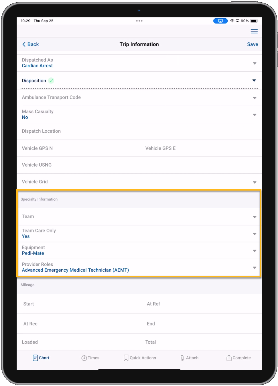 • A new Specialty Information section is available under Trip Information to support the collection of specialty details.