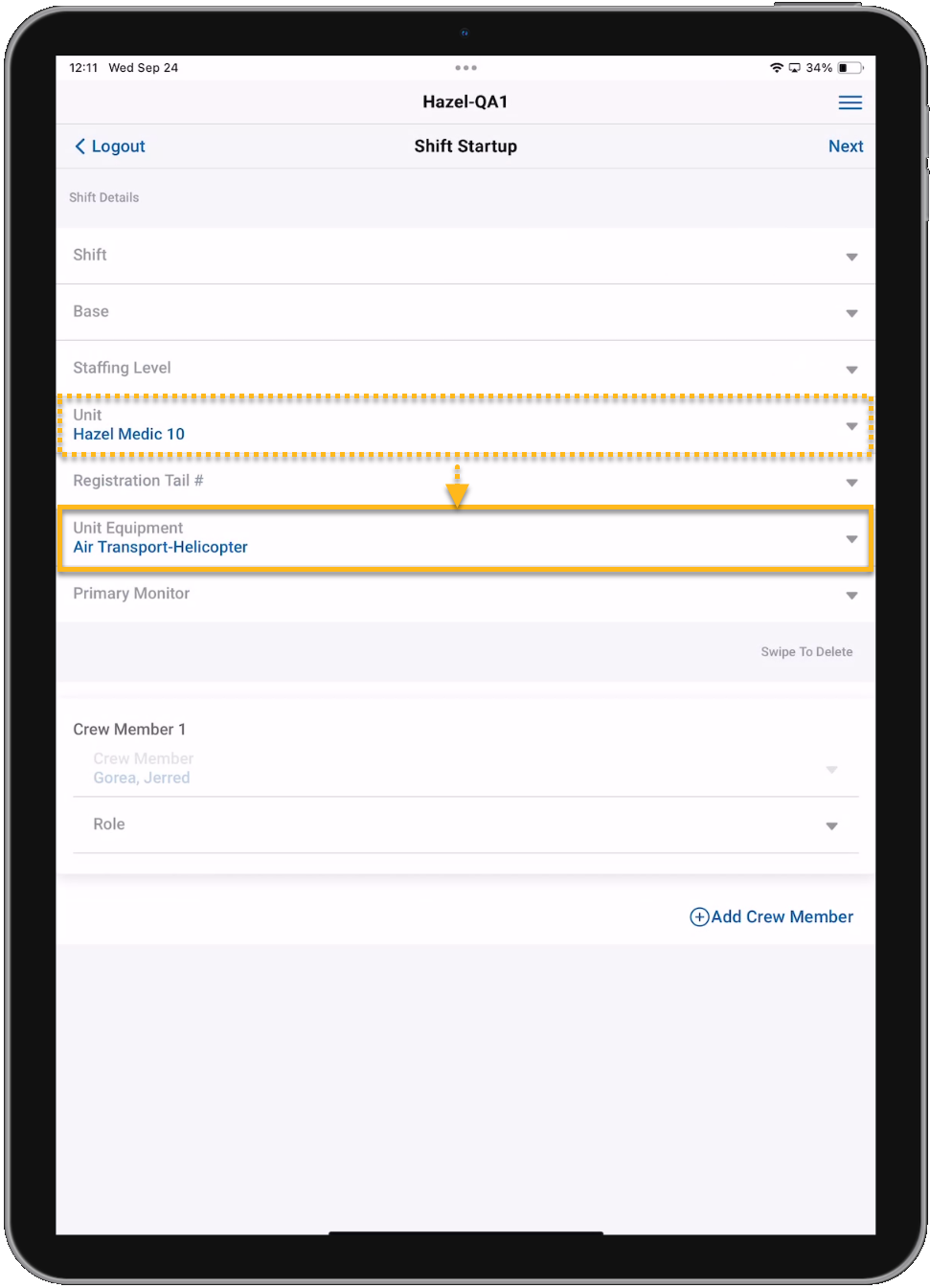 • The Unit Equipment Level configuration is now respected in emsCharts NOW which will auto-populate the Unit Equipment field based on the selected Unit.