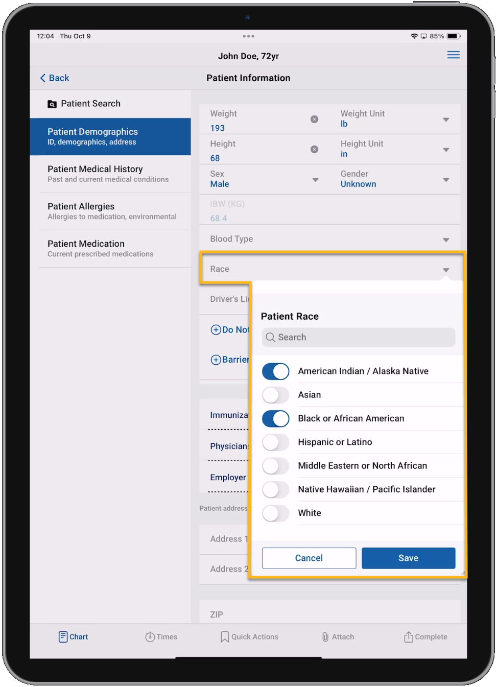 Multi-select fields like 'Race' allow you to choose as many values from the list as you need. Tap each value you want to include to toggle it on and then make sure to tap Save.