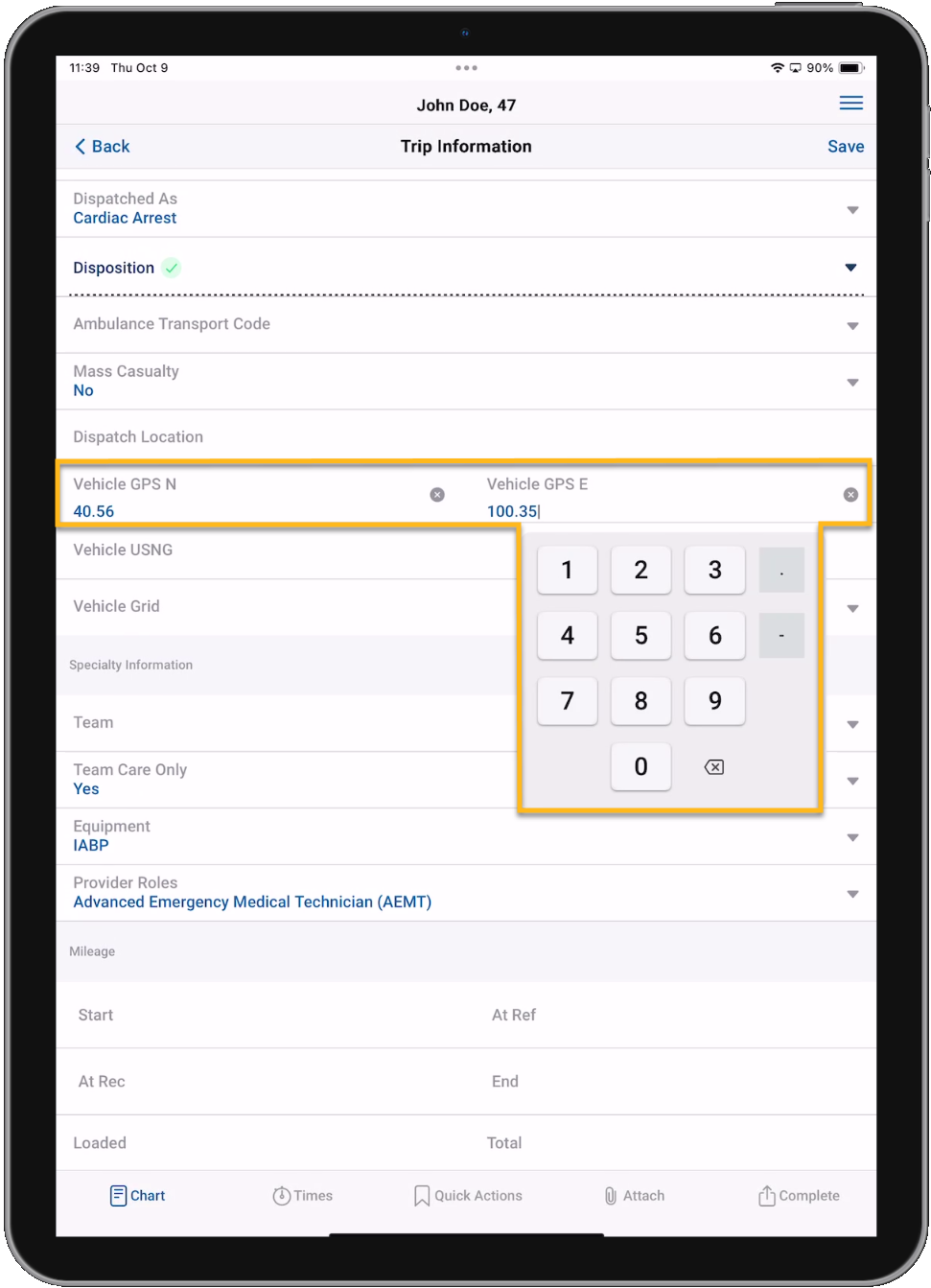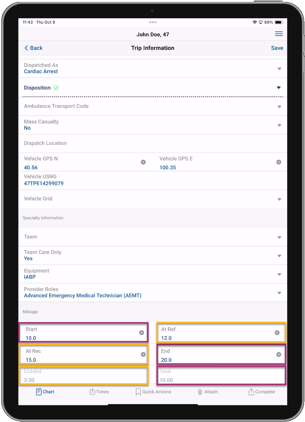 Document information about your shift and unit as well as basic dispatch information about the trip. We won't go through every field on this screen, but we will touch on a couple to show different field functionality.