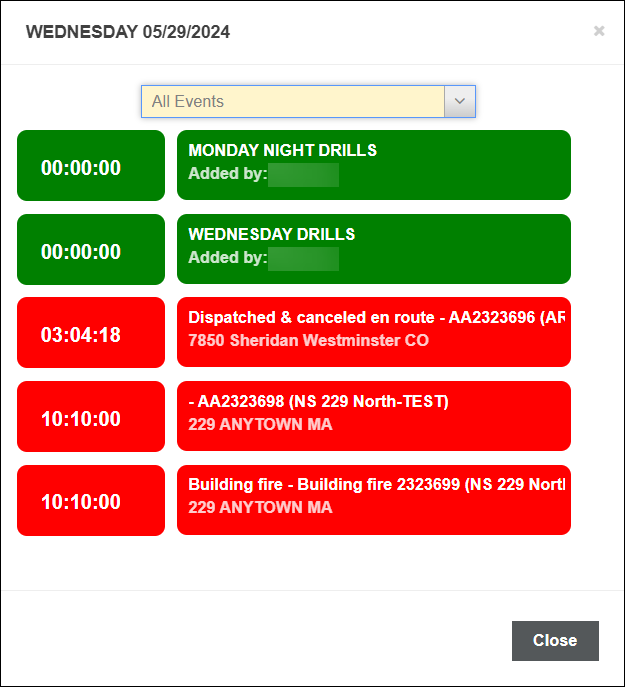 Note: Security Role privileges will determine what system events you will see in the search results. For example, if you only have permissions to view Incident Reports you were a crew member on, you will not see Incidents that were documented by different crews.