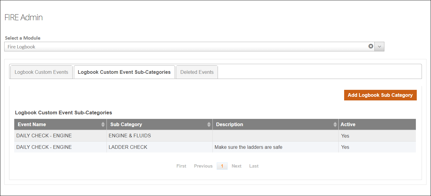 Configuration: FIRE Admin > Fire Logbook > Logbook Custom Event Sub-Categories