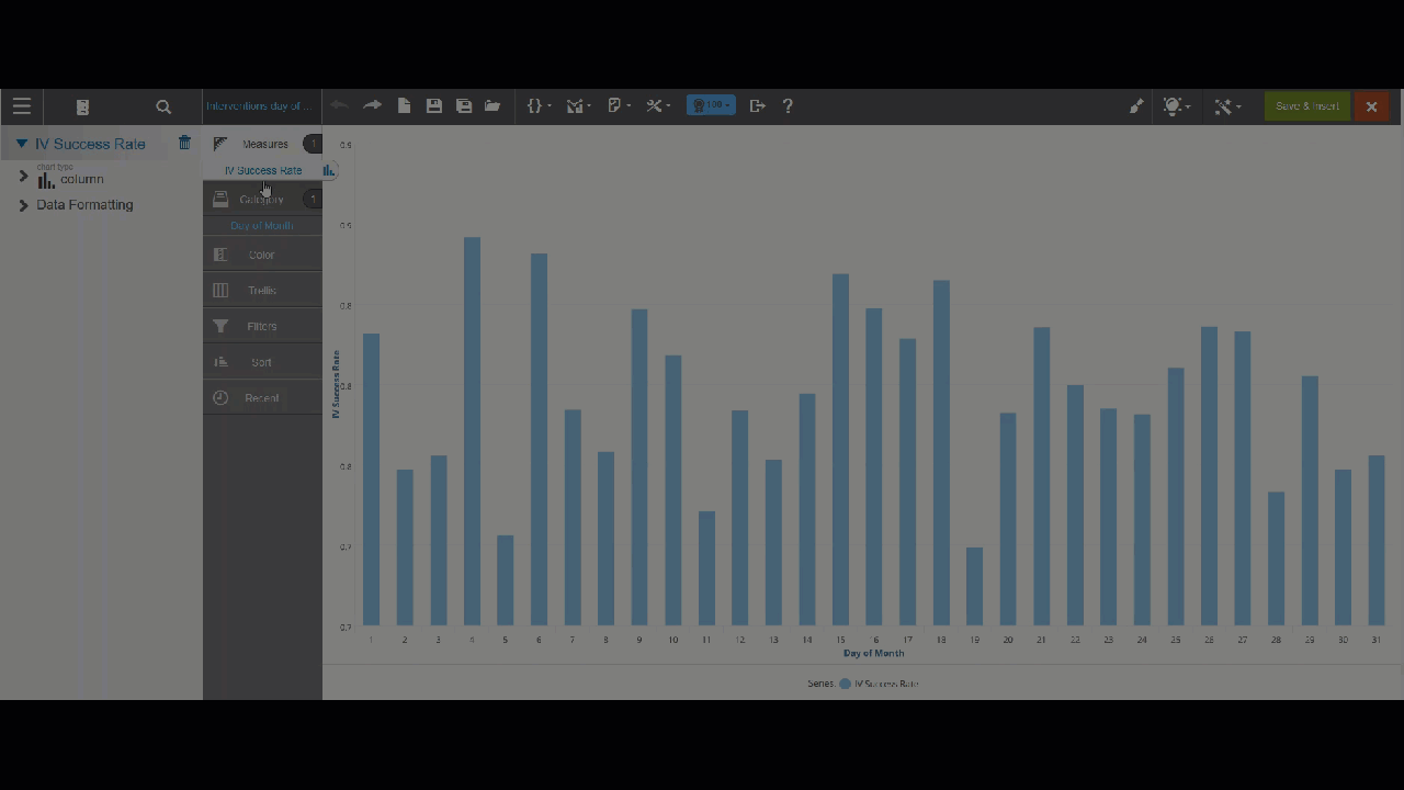 Use Sort in the Chart Builder to sort data. Measures can sort ascending or descending. Attributes sort alphabetically or reverse-alphabetically.